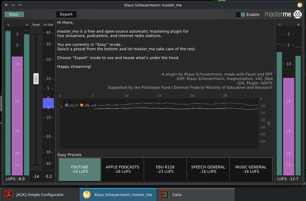 So here output from Firefox goes into Chromium to give it some LV2 reverb, then into some native metering plugin, then to the speakers 😆